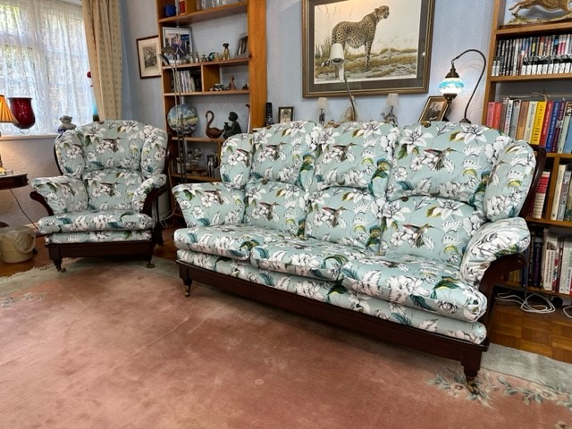 "Thank you so much for making such a superb job of re-upholstering our ’50 year old’ 3 piece suite & the Wing Chair we are delighted with it all"
